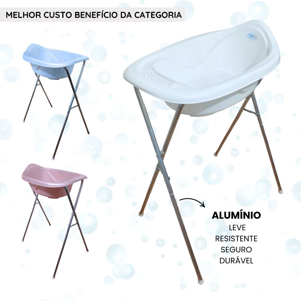 A Banheira de Bebê com Suporte é a escolha ideal para os banhos do seu bebê. Com um design prático e funcional, esta banheira possui profundidade de 20 cm e capacidade de 22 litros, proporcionando conforto e segurança para bebês de 0 a 6 meses. ============= IMPORTANTE NO ATO DA COMPRA ======================================================== Temos duas opções de compra com e sem suporte VENDA COM SUPORTE VENDA SEM O SUPORTE SOMENTE A BANHEIRA O diferencial deste modelo está no suporte de alumínio incluso, que possui 1 metro de altura, garantindo maior comodidade para os pais durante o banho. O suporte é dobrável e antiderrapante, proporcionando estabilidade e segurança no uso. Além disso, o alumínio é um material leve, resistente à corrosão e durável, garantindo um produto confiável e de longa vida útil. Fabricada em plástico resistente, a banheira tem dimensões de 68 cm de comprimento e 40 cm de largura, suportando até 20 kg. Os acessórios que acompanham o produto, como ponteiras e válvula de escoamento, facilitam a experiência de banho, tornando-a mais prática para os pais. A linha Masc Metais é reconhecida pela qualidade e durabilidade, oferecendo um produto que atende às necessidades dos bebês e proporciona tranquilidade aos pais. Transforme o momento do banho em uma experiência agradável e segura com esta banheira que une funcionalidade, conforto e resistência. **Atenção: no ato da compra possui duas opções disponíveis a do suporte com a banheira ou apenas o tanque da banheira, selecione a opção que melhor atender as suas necessidades.