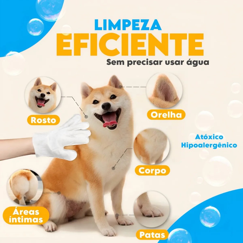 Banho A Seco Pet Luva Descartável Umedecida Com 12 Unidades