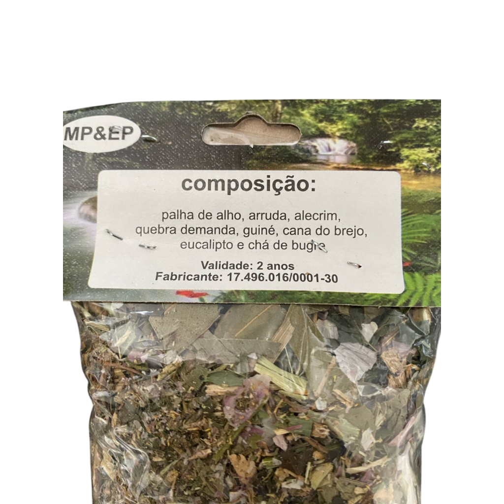 SEJAM BEM VINDOS A LUZ DO SOL ☀️ Composição: Palha de alho, arruda, alecrim, quebra demanda, guiné, cana do brejo, eucalipto e chá de bugre. Modo de usar: Abafar as ervas em água fervente deixar esfriar até uma temperatura agradável e após o banho jogue apenas do pescoço para baixo. * Não tem dia nem hora específica para se tomar o banho, tome quando se sentir confortável. VISITE NOSSA LOJA E APROVEITE NOSSOS PRODUTOS!!!!!!!