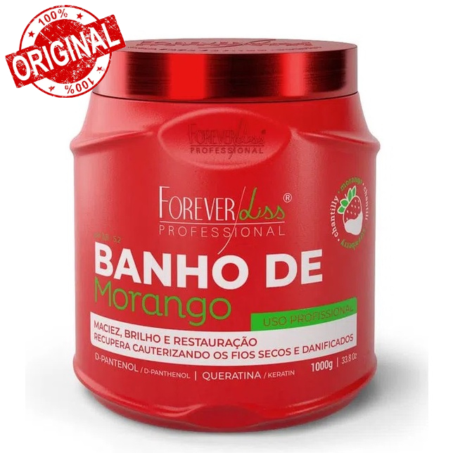 Kit Banho de Verniz Morango Profissional Brilho Extremo Forever Liss possui tecnologia única que trata profundamente os fios, promovendo hidratação, brilho intenso, deixando os cabelos radiantes, macios, sedosos e com a cor iluminada e protegida por muito mais tempo. Sua fórmula composta por ativos naturais como o Morango, Chantily, D’Pantenol e Queratina que é capaz de repor a queratina natural do cabelo deixando-o mais forte e saudável e recuperando os sinais de opacidade e danos. O Kit banho de verniz é digno de um tratamento profissional, Um cabelo de salão, em casa! Tratamento supremo aos seus cabelos. Indicação Pode ser usado por todos os tipos de cabelo, principalmente pelos opacos e sem vida. Tecnologia Chantilly: hidrata e nutre os fios danificados por processos naturais, mecânicos e de transformações químicas. D’Pantenol: vitamina indispensável para manter os fios saudáveis já que é fundamental na reposição e equilíbrio dos níveis de proteína e lipídios do couro cabeludo. Queratina: aumenta a elasticidade e resistência dos fios. Benefícios Brilho intenso Reduz o frizz Promove a proteção da cor Vitalidade e beleza para os fios Hidrata de forma profunda e duradoura Melhora a textura e maciez do cabelo Modo de uso 01. Com os fios já úmidos aplique o Shampoo Banho de verniz Morango e massageie o couro cabeludo suavemente. 02. Assim que a espuma for visível, deixe agir por alguns segundos, depois enxágue e refaça a operação. 03. Com os fios devidamente limpos e preparados, aplique a Máscara Banho de Verniz Morango em toda a extensão dos fios enluvando mecha por mecha. 04. Deixe agir por 10 minutos, até que o produto seja absorvido completamente e enxágue. 05. Ainda com os cabelos úmidos, aplique o Leave-in Banho de Verniz Morango colocando uma quantidade suficiente nas mãos e espalhe no comprimento e ponta dos cabelos. 06. Massageie suavemente mecha por mecha. 07. O leave-in pode ser aplicado como passo que antecede o secador ou a prancha e não necessita de enxágue. Resultado Cabelos com a cor protegida extremamente hidratados, com brilho brilho espelhado, super sedosos, macios e saudáveis. Contém 01 Shampoo Banho de Verniz Morango 500ml 01 Máscara Banho de Verniz Morango 1kg