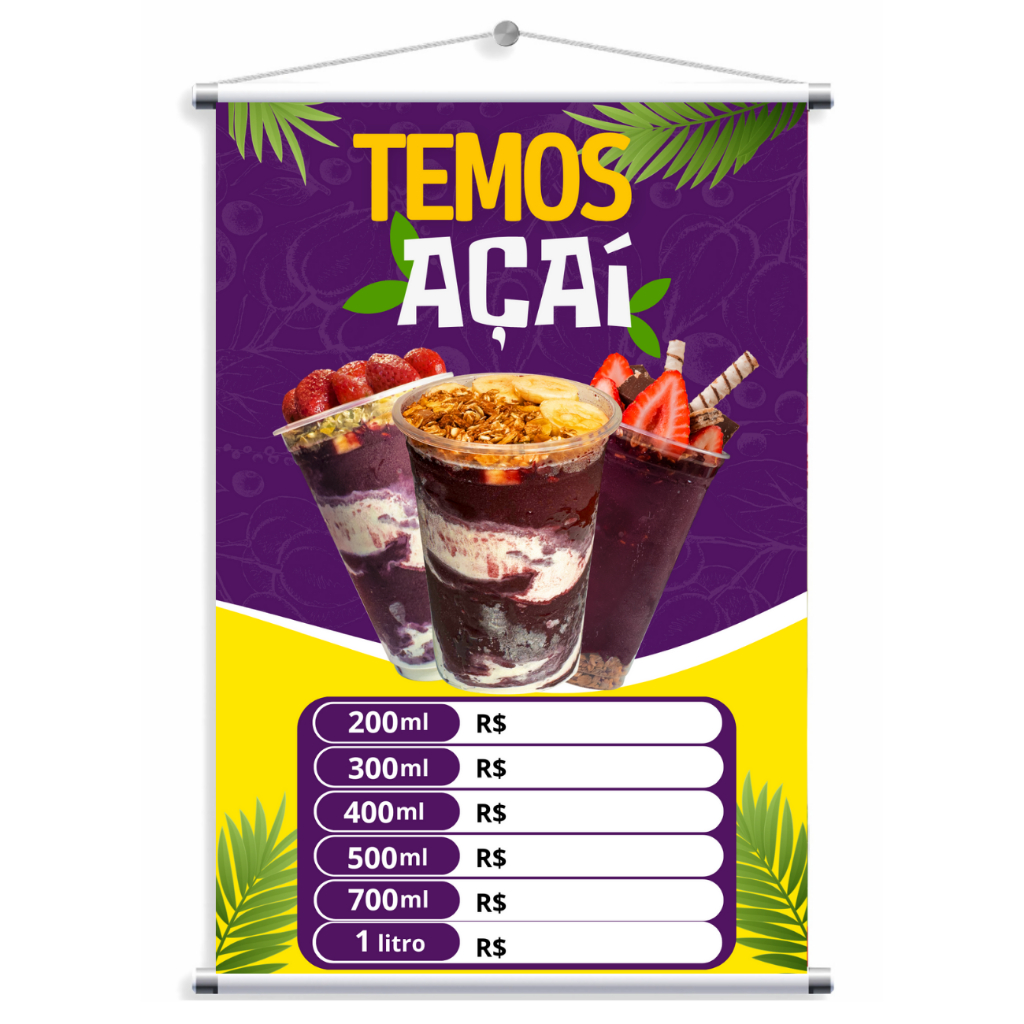 | BANNER AÇAÍ SORVETERIA SORVETE AÇAÍ NO COPO (BAN 46) este produto | R$ 16,90 | — | 4.9/5 | 80 |
