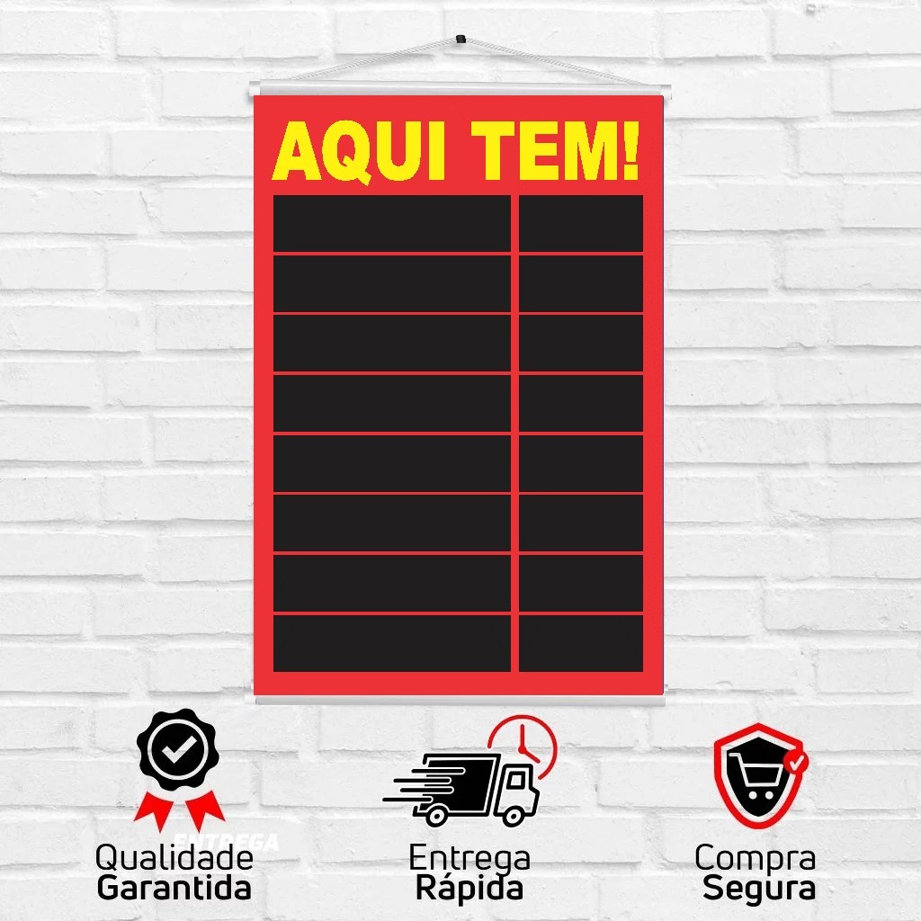 | Banner Aqui Tem 90x60cm Tabela De Preços I Arte Pronta I Envio Imed... este produto | R$ 25,00 | 50% | 4.9/5 | — |