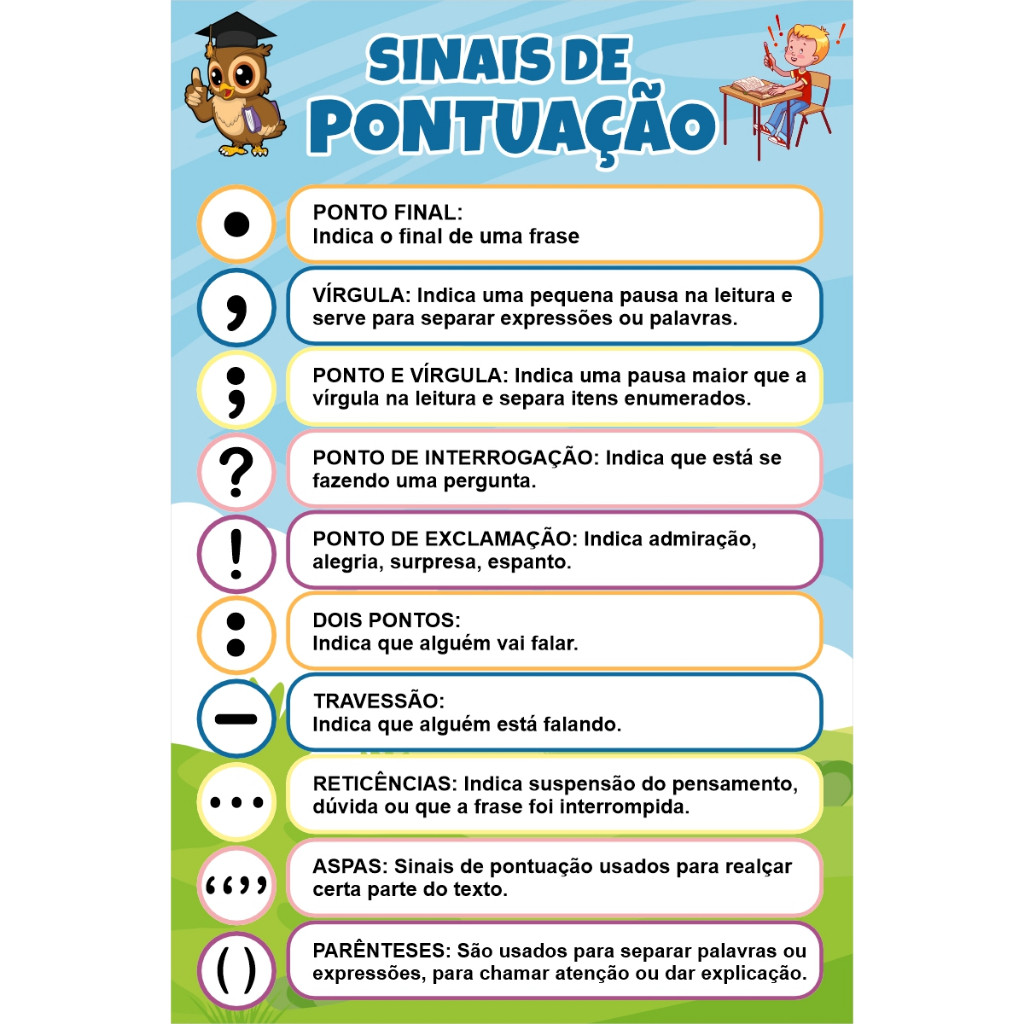 Banner Educativo Lona Sinais de Pontuação Didático 60x90cm