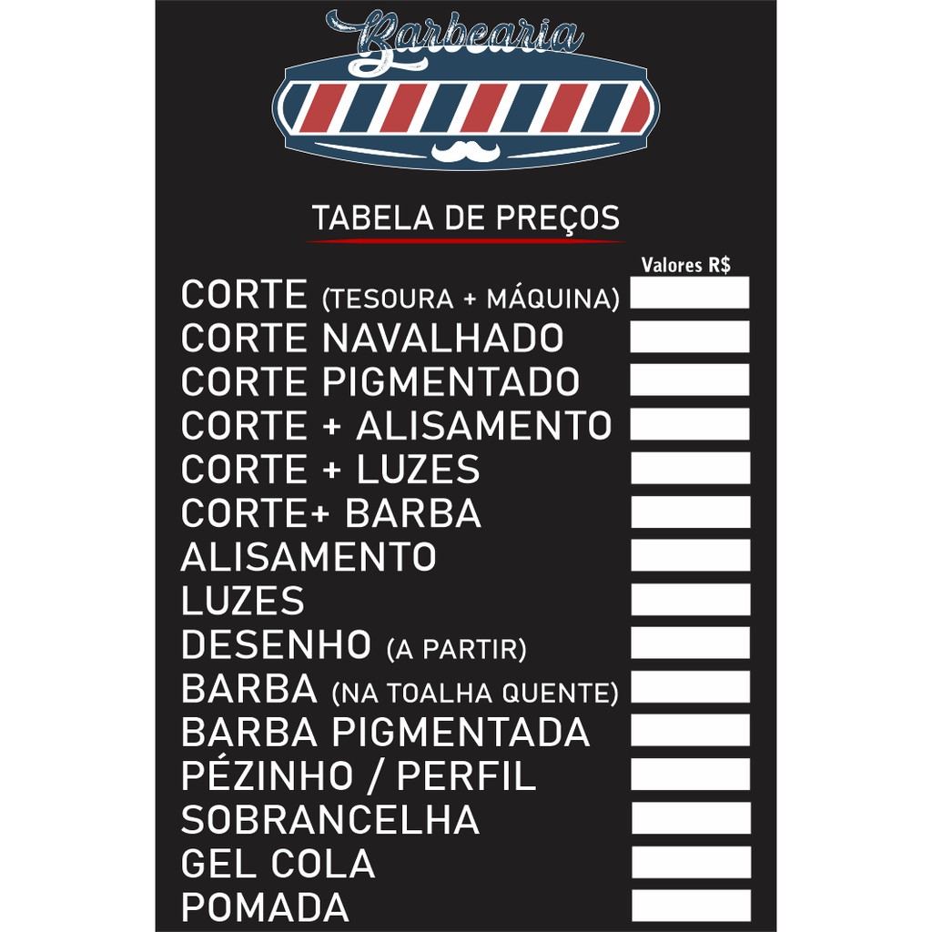 | Banner em lona_Barber_Barbearia_Tabela de Preço_man_Propaganda este produto | R$ 29,90 | — | 4.9/5 | 2 |