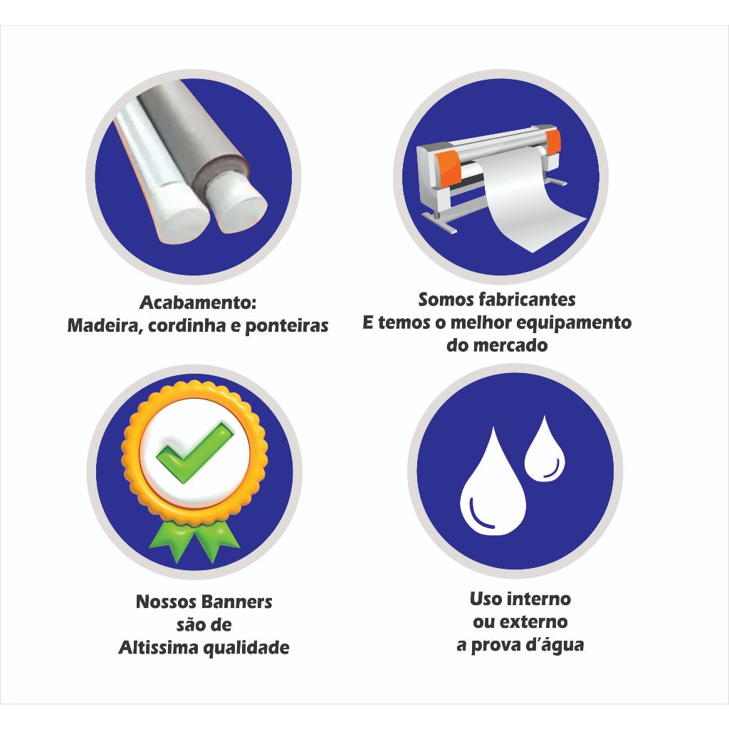 **** ENVIO EM 24 HORAS (DIAS ÚTEIS) ***** - Aumente suas vendas com nossos banners Personalizados - Banners que prendem a atenção do cliente. Nossos banners são produzidos em Impressoras de alta definição. Alta Durabilidade externa. - Descrição: Lona 440 gramas Alta resistência Largura: 0,30 centímetros Altura: 100 centímetros - Montagem: Madeirinha Bastão Ponteiras Barbante para Pendurar Acabamento impecável - Uso interno e externo. - Observação: Pode haver variação nos tons de cores em lotes de compras separadas. Uma variação de até 15%. Lembre-se sempre, as imagens vistas em telas de computador, smartphones ou tablets utilizam o sistema de cor RGB e os arquivos impressos utilizam o sistema de cores CMYK. Somos uma empresa com mais de 10 anos no mercado, produzindo materiais de alta qualidade sempre qualificando a experiencia do nosso cliente como alvo da maior importância para nossa empresa. *Adquira já o seu e garanta o sucesso da sua comunicação visual* --O SEU SUCESSO É O NOSSO SUCESSO-- Garantia do vendedor: 1 anos