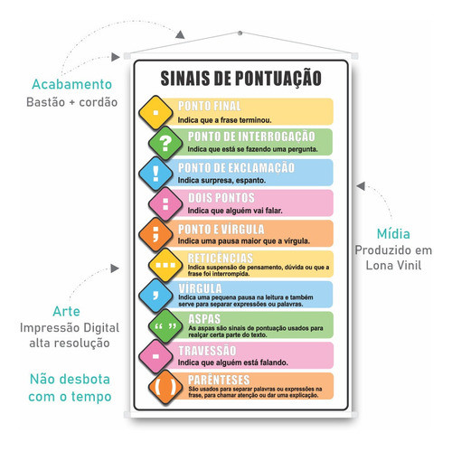 Banner Material De Apoio Pedagógico Ilustrado Sinais De Pontuação - 40 cm x 60 cm