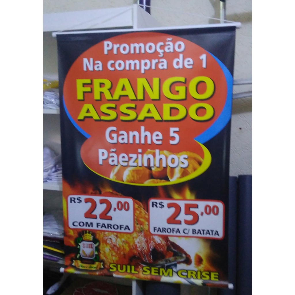 Anúncio referente a impressão digital de alta resolução em Lona ou Adesivo.Mencionar no ato da compra se vai preferir Lona ou Adesivo!!! Acabamento Incluso - você pode escolher bastão ou ilhos para Lona (mencionar no ato da compra) Valor promocional somente arte pronta ( não fazemos ou alteramos a Arte ) Devido normas do correio de medida padrão permitido de envio a lona pode ir dobrada dentro de uma caixa e o adesivo pode ir em tiras de 50cm se for maior que 100cm.Se tiver duvidas nós pergunte, que teremos o prazer de responder.Temos balcão de retirada na Vila Formosa.Boa Compra!!!