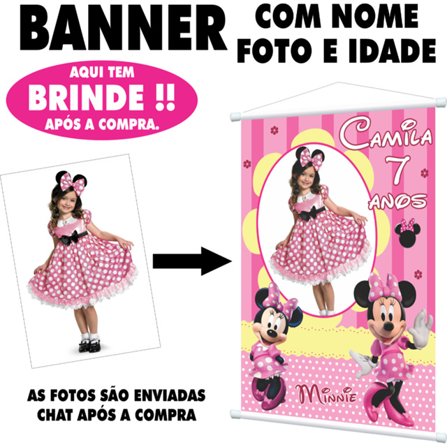 Banner Personalizado Painel Festa para Aniversário (foto grande) , nome Minnie