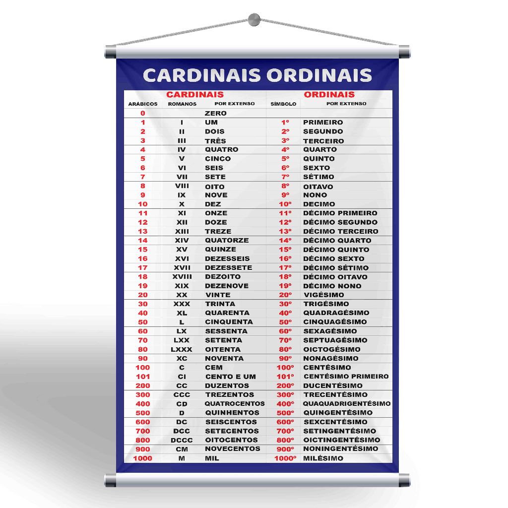 Banner Sala de Aula Números Cardinais e Ordinais + Grátis suporte para pendurar