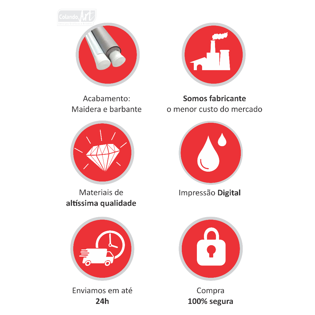Banner em lona, pode ser usado em áreas externas Tamanho: Largura: 50cm Altura: 70cm Descrição do produto - Impressão digital - Lona digital Arclad - Gramatura: 280g - Brilho - Acabamento com bastão, ponteira e cordão - Impressão de alta qualidade - Cores vivas - Pode ser usado em áreas interna e externas * Tire TODAS as suas dúvidas antes de efetuar sua compra. * Prazo de produção de 1 dia após a confirmação do pagamento