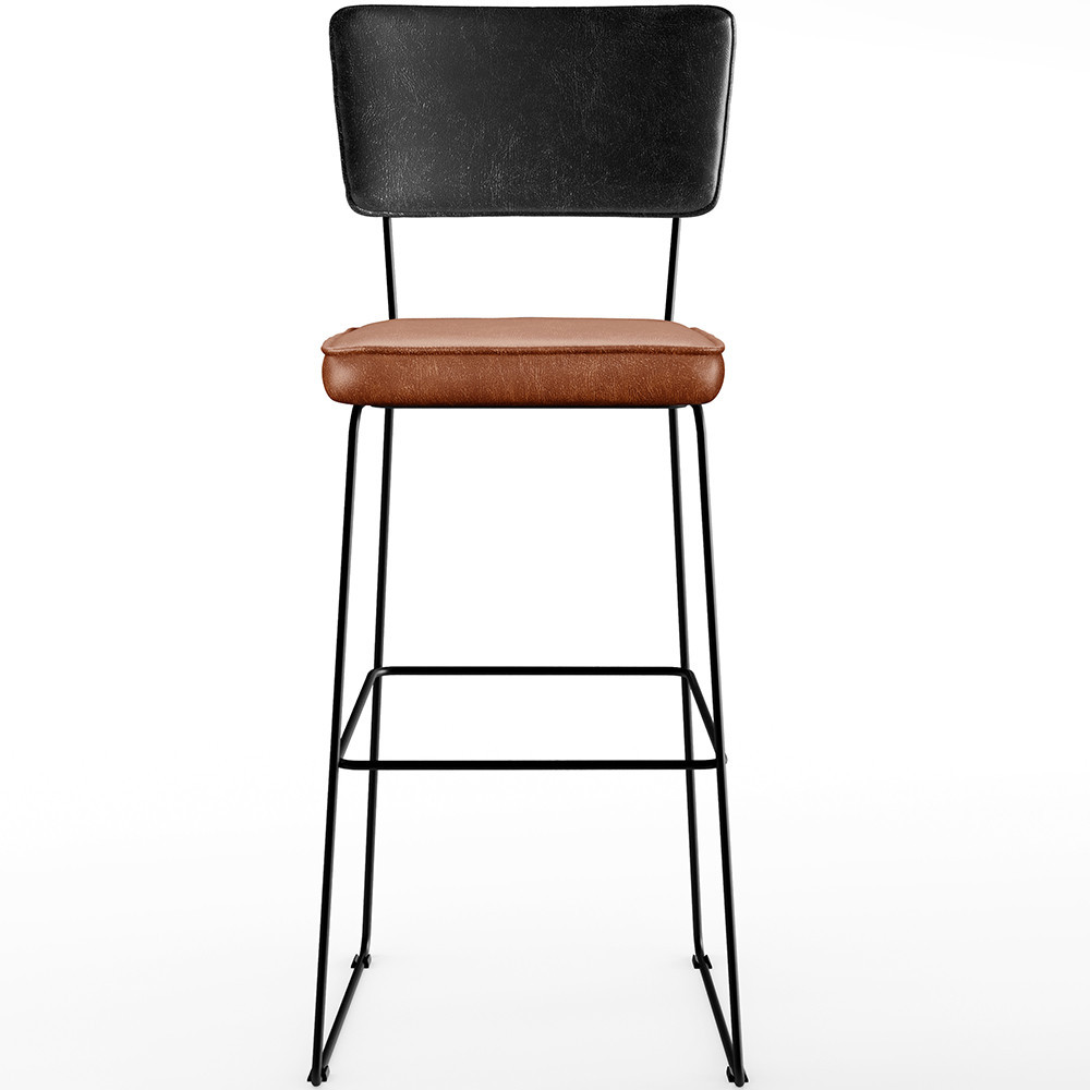 Banqueta Alta Cozinha Sala Jantar Fixa Allana L02 Couríssimo Preto Couríssimo Camel - Lyam Decor