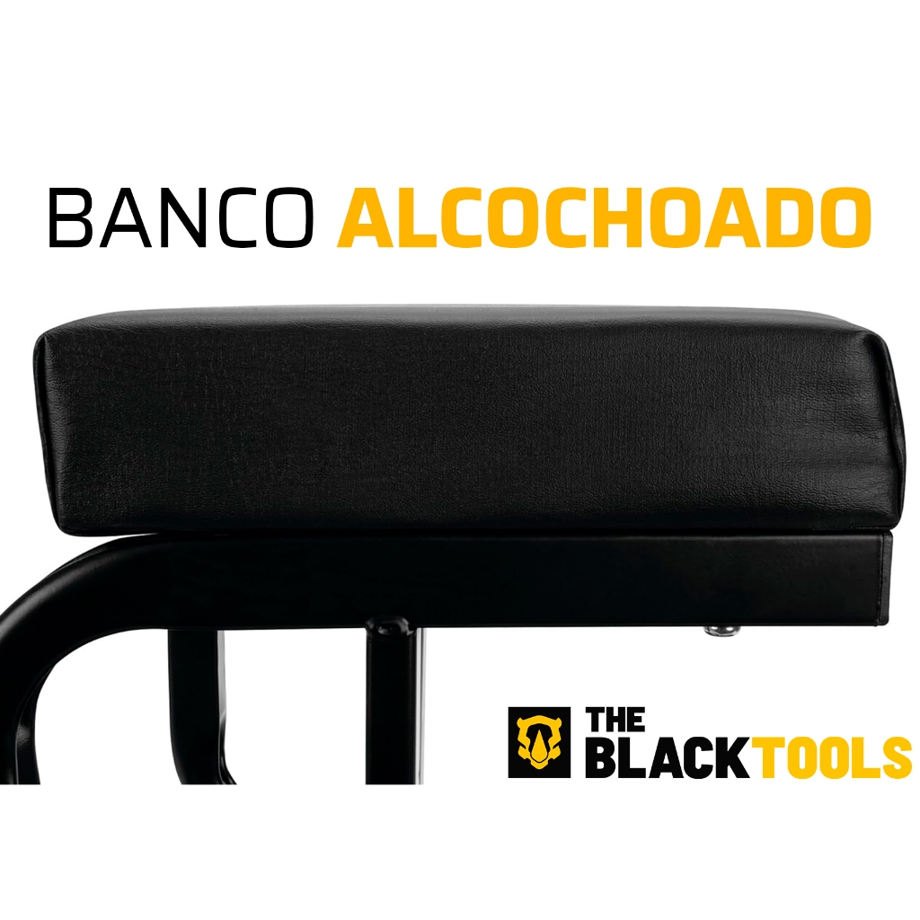 Banqueta Assento Fixo P/ Mecânico C/ Rodízio E Porta Ferramentas Até 140kg The Black Tools