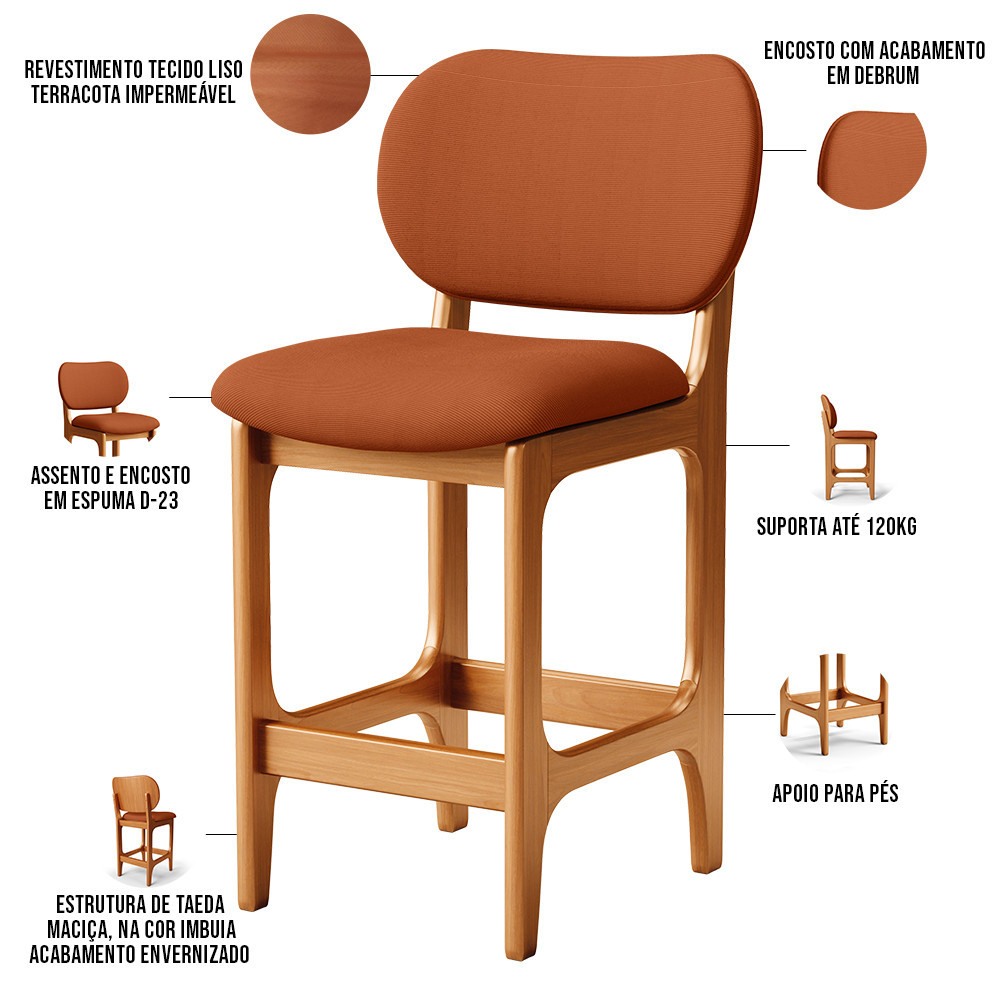 Banqueta Baixa Bar Cozinha E Sala De Jantar Fixa Betta L02 Imbuia Tecido Terracota - Lyam Decor