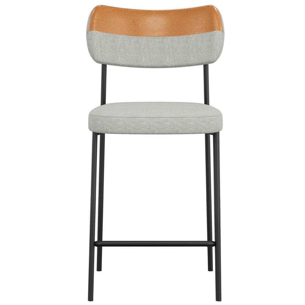 Banqueta Baixa Bar Cozinha Sala De Jantar Preto Elira L02 Couríssimo Whisky Linho Cinza - Lyam Decor