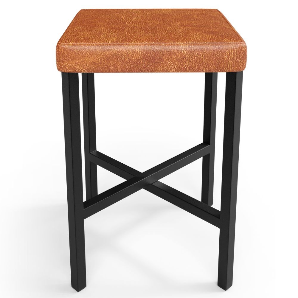 Banqueta Baixa Bar Cozinha Sala De Jantar Preto Stella L02 Couríssimo Camel - Lyam Decor