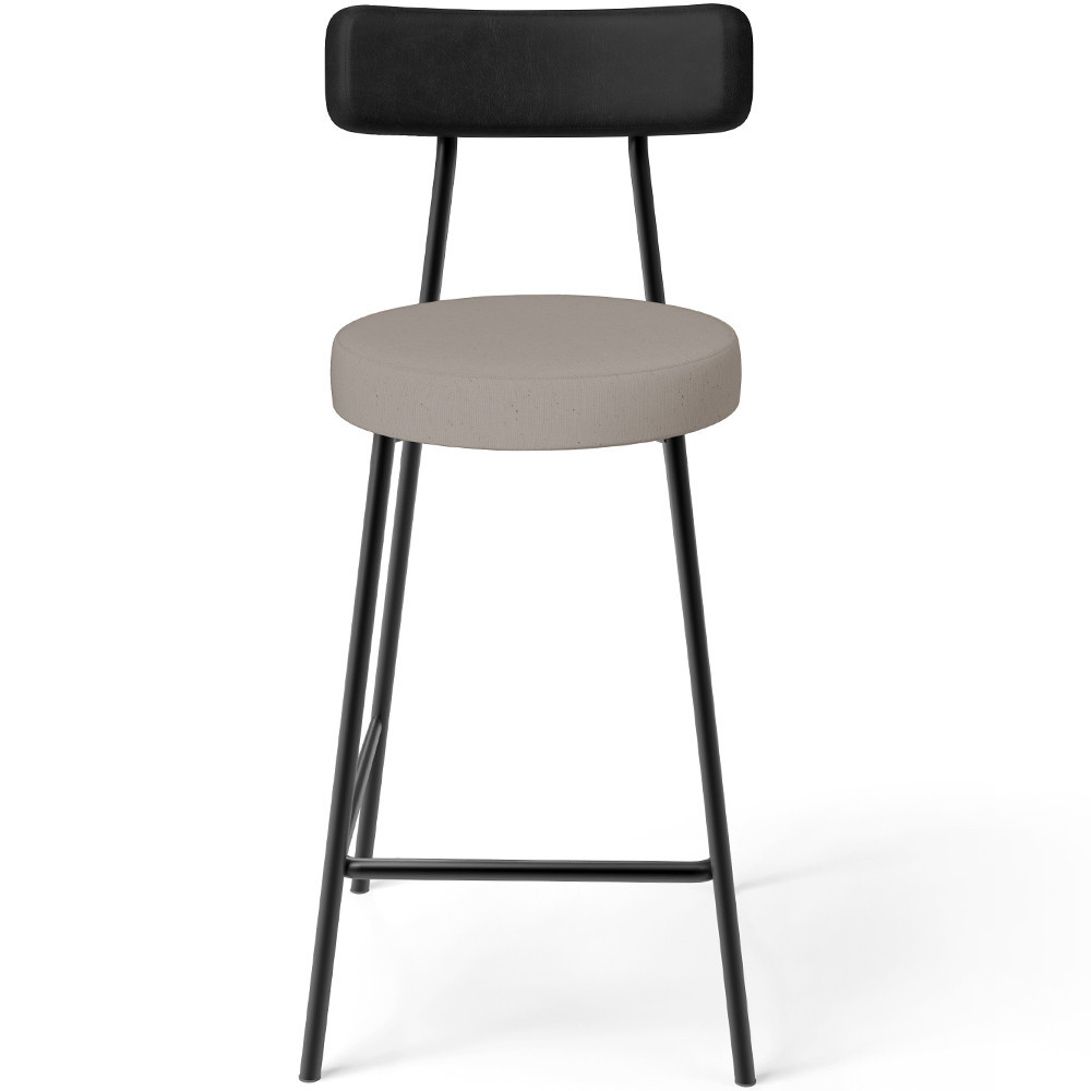 Banqueta Baixa Cozinha E Sala De Jantar Bancada Milão L02 Couríssimo Preto Linho Bege - Lyam Decor