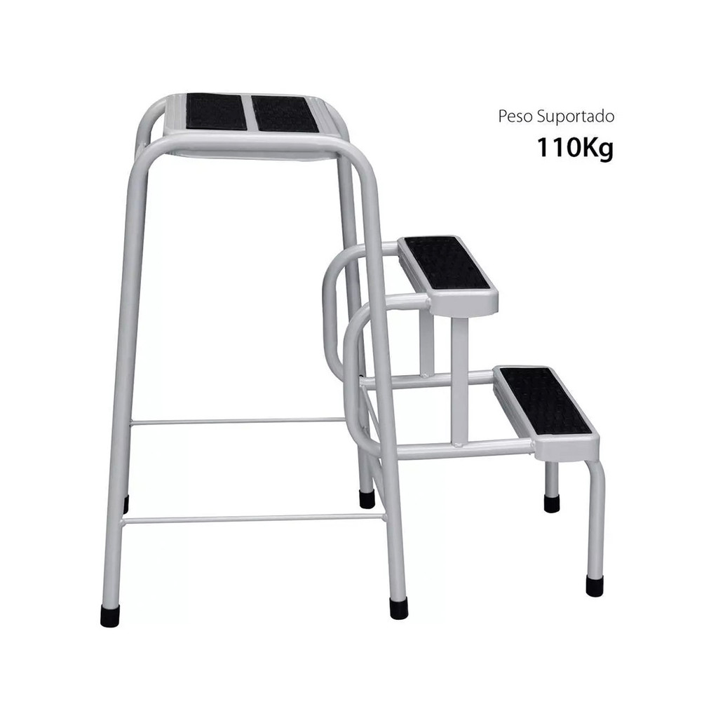 Banqueta Escada Escadinha 3 Degraus Resistente Branca Banco Dobrável Multiuso Casa