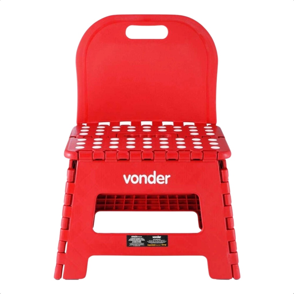 - Banqueta dobrável antiderrapante, com alça para transporte (fechada) e encosto. - Prática, leve e fácil de transportar, é ideal para camping, pescarias, passeios, uso doméstico, entre outros. Características: - Marca: Vonder - Modelo:3540220002 *Imagens Meramente Ilustrativas* Especificações: - Material da banqueta: Plástico ABS - Capacidade de carga: 150 kgf - Dimensões (fechada): Comprimento: 320 mm x Largura: 65 mm x Altura: 428 mm - Dimensões (montada): Comprimento: 320 mm x Largura: 250 mm x Altura: 220 mm (Altura com encosto: 428 mm) - Cor da banqueta: Vermelha - Peso: 1,48 kg Conteúdo da embalagem: - 1 Banqueta dobrável.
