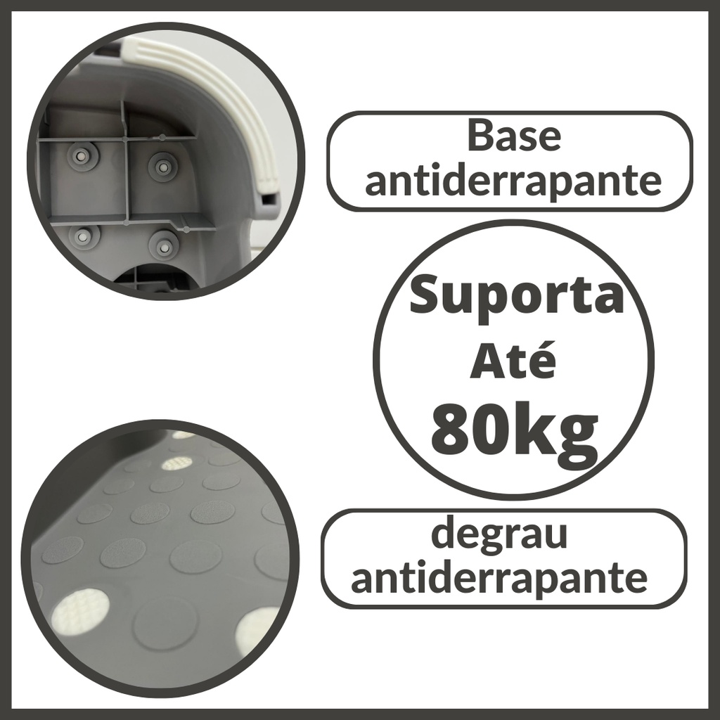 | Banquinho De Banheiro Infantil 2 Degraus Antiderrapante Cinza Kababy este produto | R$ 78,90 | 34% | 5.0/5 | 11 |