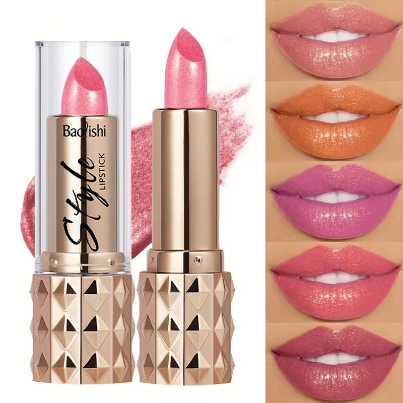 Baolishi batom brilhante perolado, disponível em várias cores, com tubo de diamante dourado, maquiagem labial vibrante
