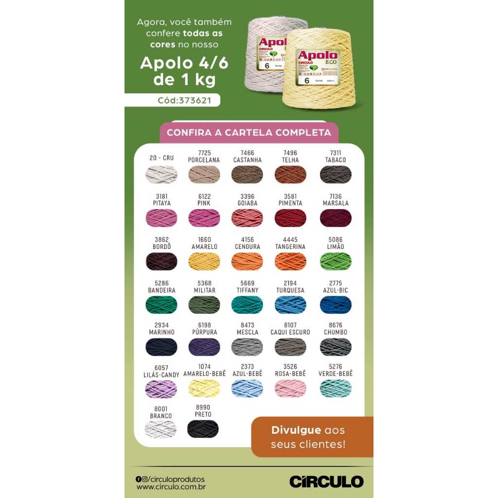 Barbante Apolo 1Kg Círculo Número 6 - 1045 metros - Crochê / Tricô - VÁRIAS CORES - LANÇAMENTO