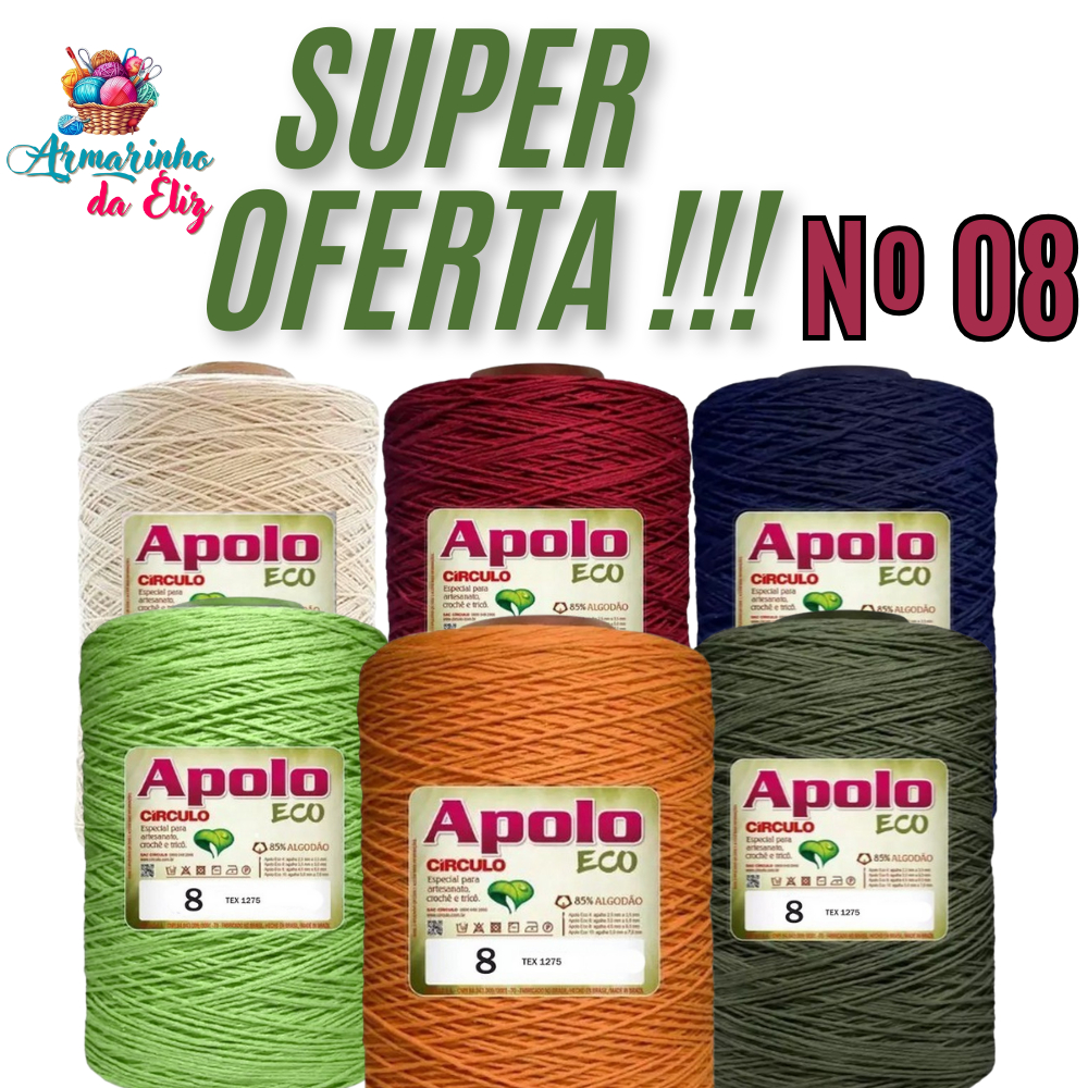 | Barbante Apolo Eco Circulo Nº 08 - 1,8kg - 1372m este produto | R$ 52,90 | — | 4.9/5 | 297 |