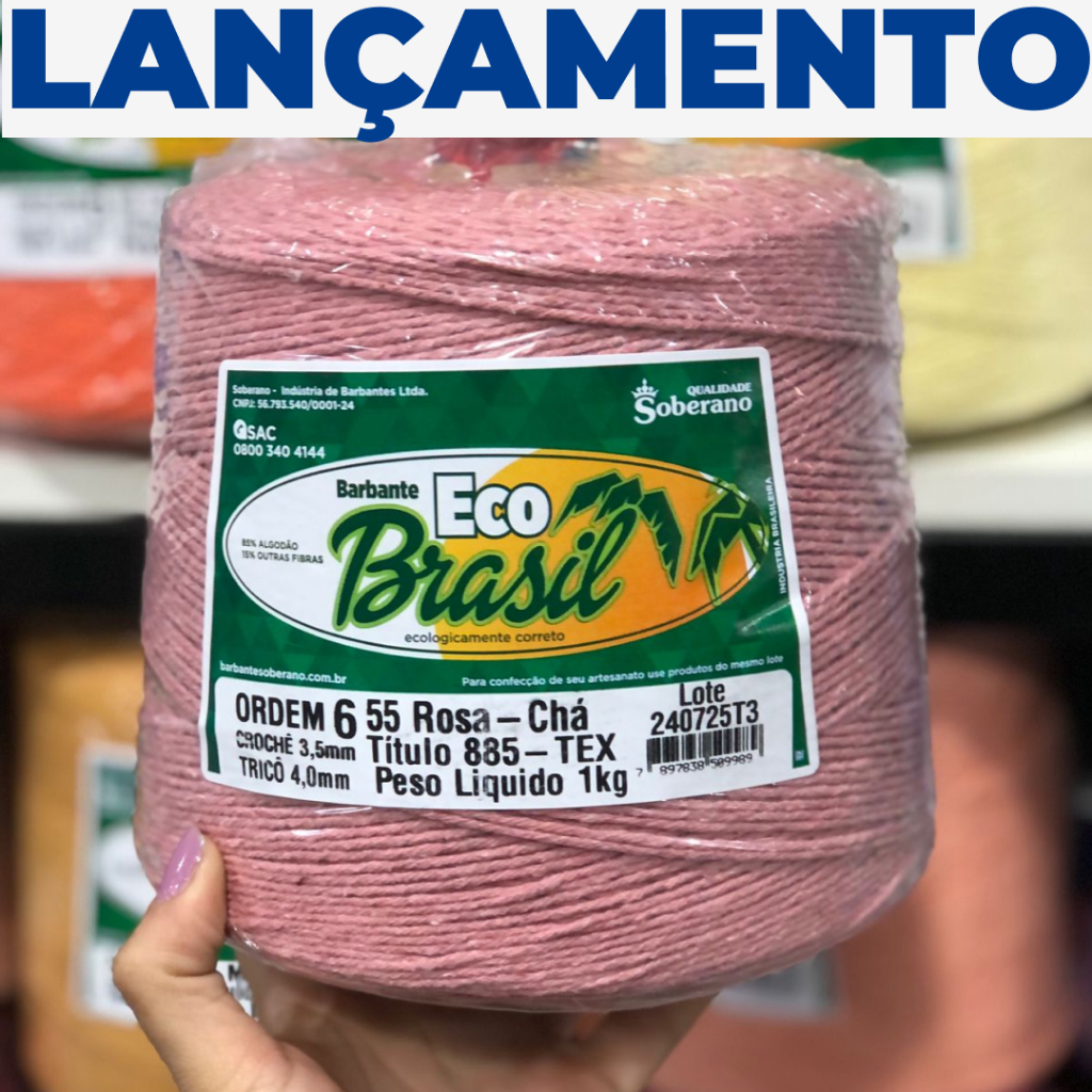 BARBANTE ECO BRASIL 6 COR AMARELO OURO, ROSA CHÁ OU VERDE CLARO EDIÇÃO LIMITADA Descubra o barbante perfeito para o seu projeto! Com a Barbante Eco Brasil você cria peças lindas e únicas. Nossos barbantes são ideais para crocheteiros e entusiastas do artesanato de todos os níveis que desejam fazer algo especial. Este barbante é ideal para diversos artesanatos, do crochê ao macramê, toalha em crochê, tapete em crochê, sousplat em crochê e decoração em crochê. Especificações: Marca: Eco Brasil Modelo: Eco Brasil 06 fios Medidas: 1000 gramas Composiçao: 85% Algodão e 15% outras fibrasAgulha Crochê: 4,0 mmAgulha Tricô: 4,5 mm