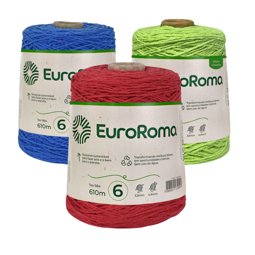 Encontre o item Barbante EuroRoma Nº 6 600g 610m Sustentável 85% Algodão Reciclado - Tapetes, Sousplat, Bolsas na subcategoria Bordado (de Brinquedos e Hobbies), disponível na Shopee Brasil por R$ 25,50 (15% de desconto sobre o preço original de R$ 30,00). Nota 4.9 de 5 na Shopee e 351 unidades vendidas, este produto se destaca pelo excelente custo-benefício.