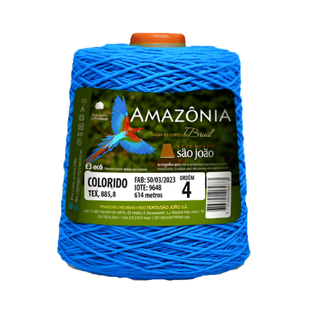 Barbantes fio número 4 colorido Amazonia São João. 4/4 (Tex 590,6) Comprimento: 600 metros. Peso: 400g. Agulhas recomendadas: Crochê: 3mm. Tricô: 4mm.