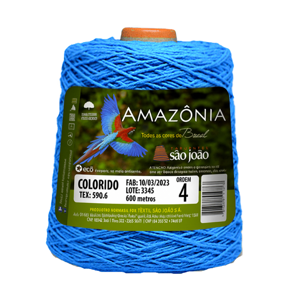Cores Sortidas Saldo são produtos sem embalagem Barbantes fio número 4 colorido Amazonia São João 4/4 (Tex 590,6) Comprimento: 600 metros. Peso: 400g. Agulhas recomendadas: Crochê: 3mm. Tricô: 4mm.