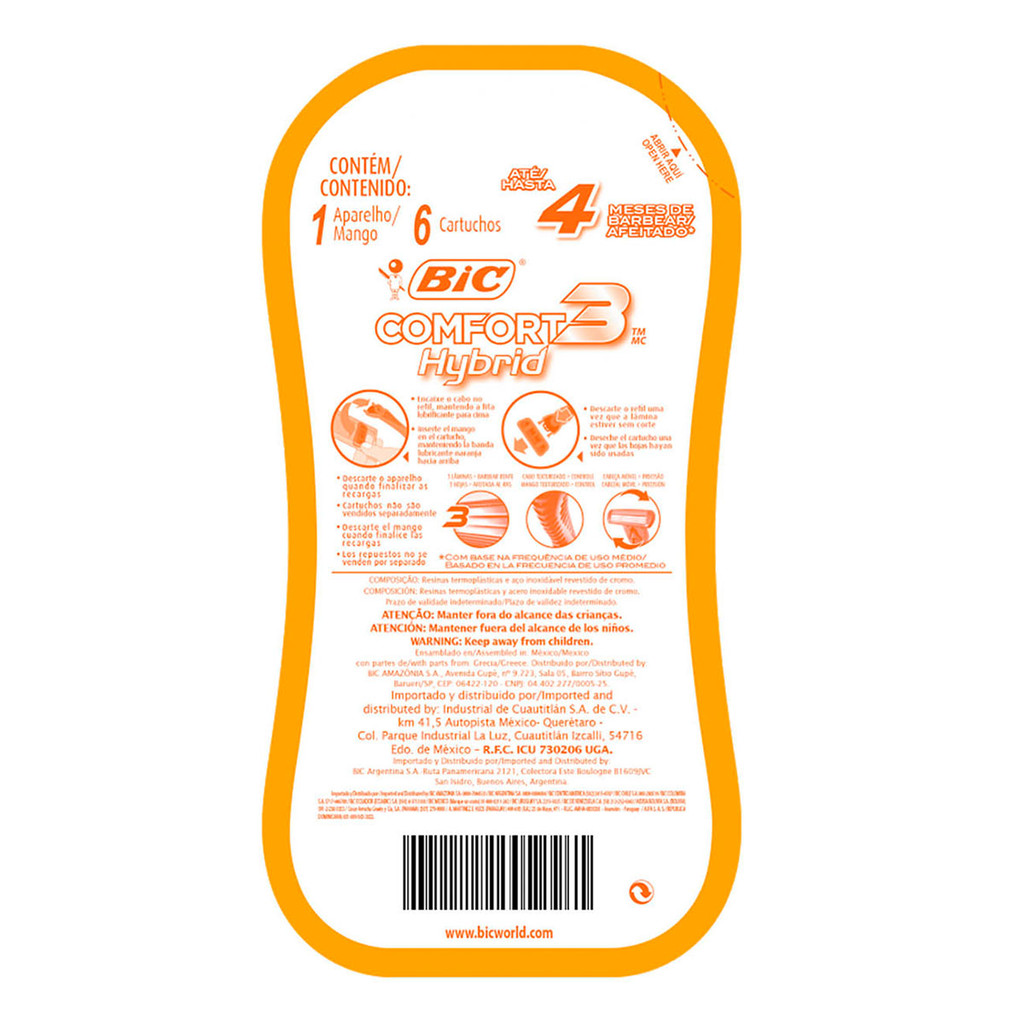 Barbeador descartável Confort3 Hybrid recarregável Cinza + 6 lâminas Bic