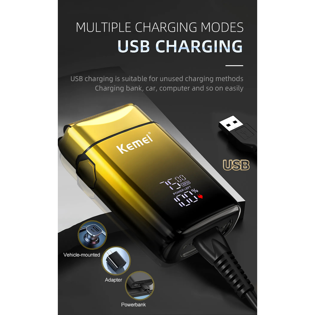 Barbeador Elétrico Kemei Barbeadores De Cabeça Careca Lâmina De Barbear Display LCD Sem Fio USB Aparador De Barba Recarregável
