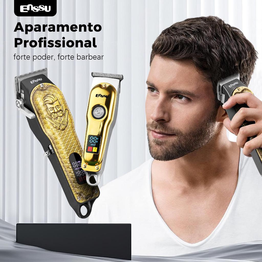 "🧡 BEM-VINDO À LOJA OFICIAL DA ENSSU 🧡 🚀🚀🚀🚀 LOJA LOCAL NO BRASIL (ENTREGA EM 24 HORAS) 📦 Conteúdo da Embalagem: 1x Máquina de cortar cabelo 4x Pentes de limite (3/6/9/12 mm) 1x Protetor de lâmina 1x Cabo de carregamento USB Type-C 1x Escova de limpeza Certificações do Produto: CE, UL, FCC, RoHS, MSDS, UN38.3, UKCA ✅ Destaques do Produto: 01. Lâmina de Aço Inoxidável de 45 mm As lâminas superior e inferior são feitas 100% de aço inox, proporcionando um corte forte e durável. 02. Cabeça de Corte Ajustável A lâmina inferior é ajustável, permitindo cortes de 0,5 mm a 2,5 mm para diferentes estilos. 03. Tela LCD Inteligente Exibe a rotação do motor e a porcentagem da bateria restante, facilitando o controle durante o uso. 04. Alertas de Carregamento e Manutenção Ícones luminosos indicam quando é necessário carregar ou lubrificar a lâmina. 05. Motor Potente de 6500 RPM Desempenho forte, cortes rápidos e sem enroscar os fios, garantindo um acabamento preciso. 06. Bateria de Alta Capacidade Com 1800mAh, oferece até 3 horas de uso contínuo após carga completa. 07. Carregamento Tipo-C Compatível com carregadores universais, prático para viagem e uso diário. 08. Design Ergonômico Corpo confortável de segurar e com botão de fácil acesso, ideal para longos períodos de uso. 09. Acessórios Completos Inclui 4 pentes guia (para diferentes comprimentos de corte), escova de limpeza e protetor de lâmina. ------------------------------------------------------------------------------------------------------------------------------------------------------------------------------------------------------------------------------------- ✅ Destaques do Produto: 01. Lâmina T de Aço Inoxidável Corte forte e preciso, ajustando-se à pele para um barbear bem rente e eficaz, ideal para a linha de cabelo e acabamentos de barba. 02. Multifuncional Perfeito para aparar cabelo, barba e pelos corporais, oferecendo uma solução versátil para vários cuidados de grooming. 03.Ajuste de Velocidade em 2 Níveis Pressione o botão duas vezes para aumentar a velocidade, ideal para diferentes cenários e necessidades de aparagem. 04. Exibição Digital de Bateria Exibição em tempo real da carga da bateria, permitindo que você acompanhe a quantidade de energia disponível. 05. Alertas de Carregamento e Manutenção Ícones no display permanecem acesos quando for necessário carregar ou lubrificar a lâmina. --------------------------------------------------------------------------------------------------------------------------------------------------------------------------------------------------------------------------------------- Cor do Produto: Dourado Potência Nominal: 5W Tensão Nominal: 3,7V Tensão de Carregamento: 5V Tempo de Carregamento: 3 horas Conector de Carregamento: Conector Type-C Tempo de Uso: 180 minutos