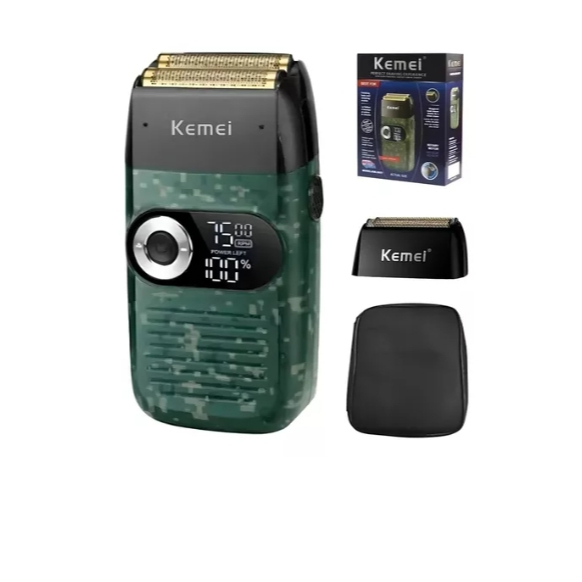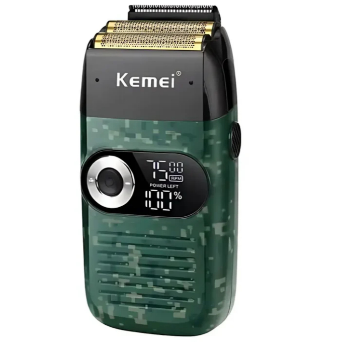 Barbeador Elétrico Shaver Kemei Km - 2027 Bivolt Profissional Cor Verde-escuro 110V/220V Sem Fio USB