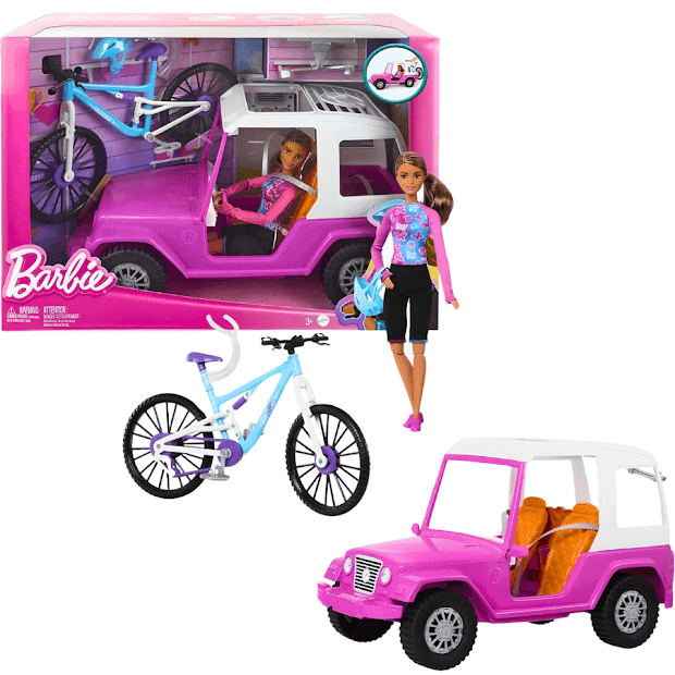 Barbie Conjunto Boneca com Bicicleta de Montanha - Mattel A Barbie Conjunto Boneca com Bicicleta de Montanha da Mattel é o sonho de toda criança. Com design moderno e cheio de estilo, esse conjunto proporciona horas de diversão e aventuras para a sua pequena. A Barbie está pronta para desbravar novos terrenos com sua bicicleta e seu carro off road. Com a Barbie Conjunto Boneca com Bicicleta de Montanha, a criança pode soltar a imaginação e criar inúmeras histórias e cenários para a sua boneca favorita. Além disso, o brinquedo estimula a coordenação motora e o desenvolvimento da criatividade. Idade recomendada: A partir de 3 anos. Selo Inmetro: 005987/2021. Principais Mais sobre o Produto: Conjunto Barbie Bicicleta e Carro Off Road. Design moderno e cheio de estilo. Estimula a imaginação e a criatividade das crianças. Desenvolve a coordenação motora. Dicas de Uso: Para garantir a durabilidade do produto, recomenda-se evitar o uso em superfícies ásperas que possam danificar os acessórios. ABarbie Conjunto Boneca com Bicicleta de Montanha é perfeita para presentear e encantar as crianças em diferentes ocasiões. Ficha Técnica: Nome do produto: Barbie Conjunto Boneca com Bicicleta de Montanha; Marca: Mattel; Idade recomendada: A partir de 3 anos; Selo Inmetro: 005987/2021; Inclui: Inclui 1 boneca Barbie com roupa e tênis de ciclismo, 1 veículo, 1 bicicleta, 1 suporte para bicicleta e 1 capacete. A boneca não pode ficar em pé sozinha. As cores e as decorações podem variar.