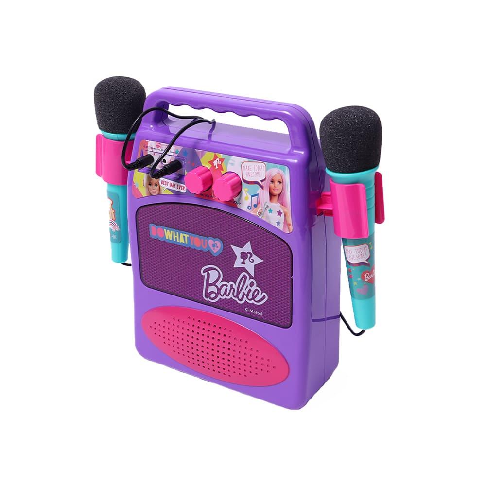 Barbie: Meu Primeiro Karaoke - Diversão Musical e Estimulação da Criatividade indicado para Crianças a partir de 4 anos A Barbie: Meu Primeiro Karaoke, um brinquedo eletrônico cativante que transforma o quarto do seu filho em um palco artistico de cantores! Esse brinquedo promete horas de diversão musical e encanto. O que inclue junto com a Barbie: Meu Primeiro Karaoke? O conjunto inclui 2 microfones, 1 alto-falante amplificador com efeitos de luzes "discos", 2 cabos extra longos e 2 suportes de fixação para microfone. A funcionalidade de conexão Bluetooth adiciona uma dimensão moderna ao brinquedo, permitindo que as crianças cantem suas músicas favoritas diretamente de seus dispositivos conectados. O brinquedo requer 6 pilhas LR6/AA de 1,5V e uma de 9V (não inclusas). Como brincar e se divertir com a Barbie: Meu Primeiro Karaoke? Com o Barbie: Meu Primeiro Karaoke, permite que seu filho cante e brinque sozinho ou com amigos. O alto-falante amplificador com efeitos de iluminação "discos" proporcionam uma autêntica experiência de show ao vivo. Os cabos extralongos e um suporte de montagem para o microfone permitem a máxima mobilidade durante sua performance. Vantagens em brincar com o Karaoke Barbie Este brinquedo oferece diversos benefícios, desde o desenvolvimento de habilidades de performance e criatividade até o incentivo à autoexpressão. Além disso, o Barbie: Meu Primeiro Karaokeajuda a criar confiança e a tornar habilidades sociais mais fáceis quando usado em um ambiente de grupo. Selo Inmetro: 02115-000