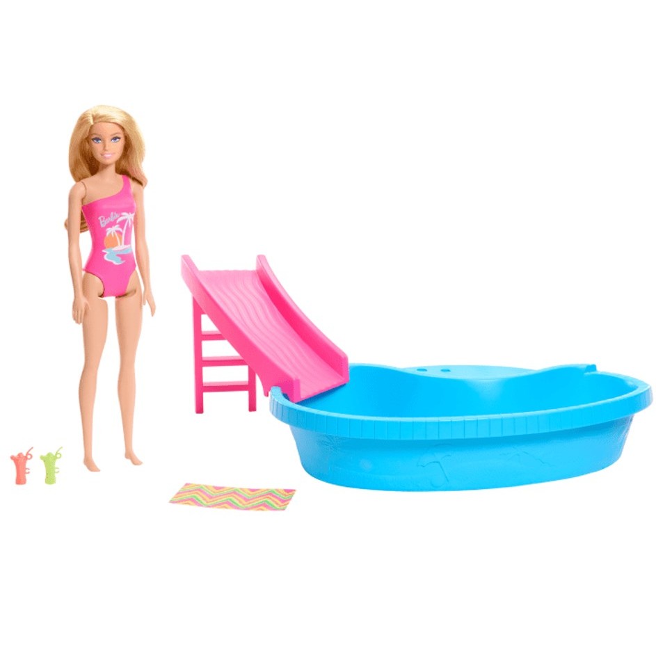 Barbie Piscina com Boneca Maiô Rosa - Mattel