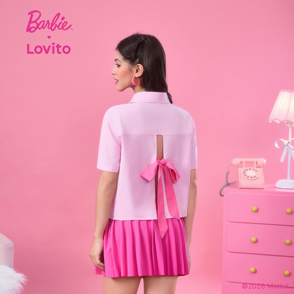 Barbie™ X Lovito Blusa Casual Botão Primavera/verão Blusa Rosa para mulheres LB1AD022