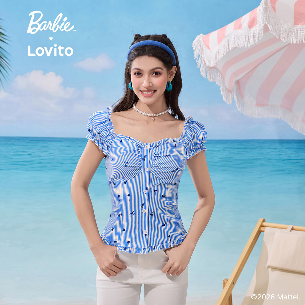 Barbie™ X Lovito Blusa Casual com Botões para Primavera/verão para Mulheres LB1AD026