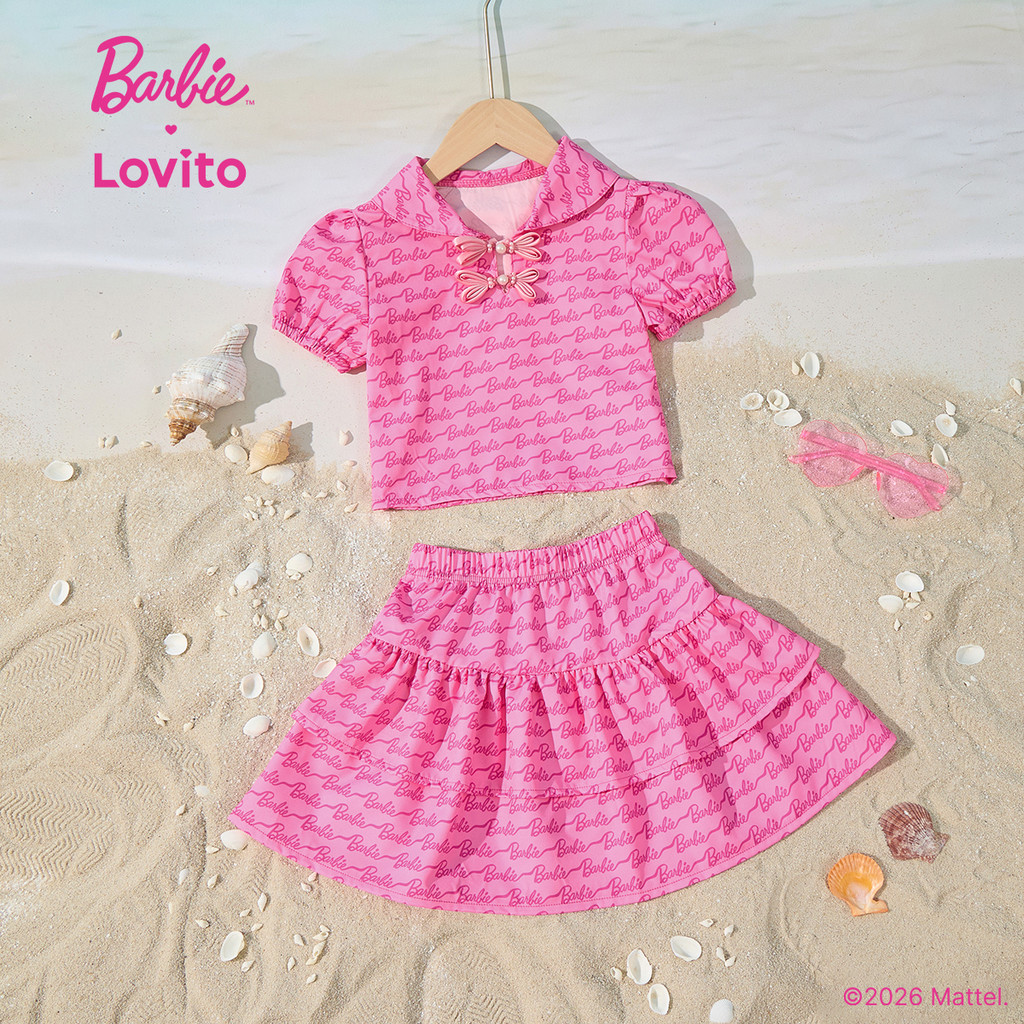 Barbie™ X Lovito Kids Conjuntos de Saia Fofa Estilo Chinês Novo Conjunto Saia Rosa Primavera/verão para Meninas LB1AD007