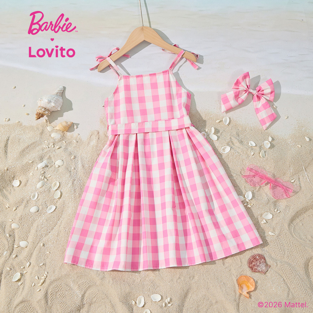 Barbie™ X Lovito Kids Vestido Rosa Primavera/verão com Cinto e Laço para Menina LB1AD005
