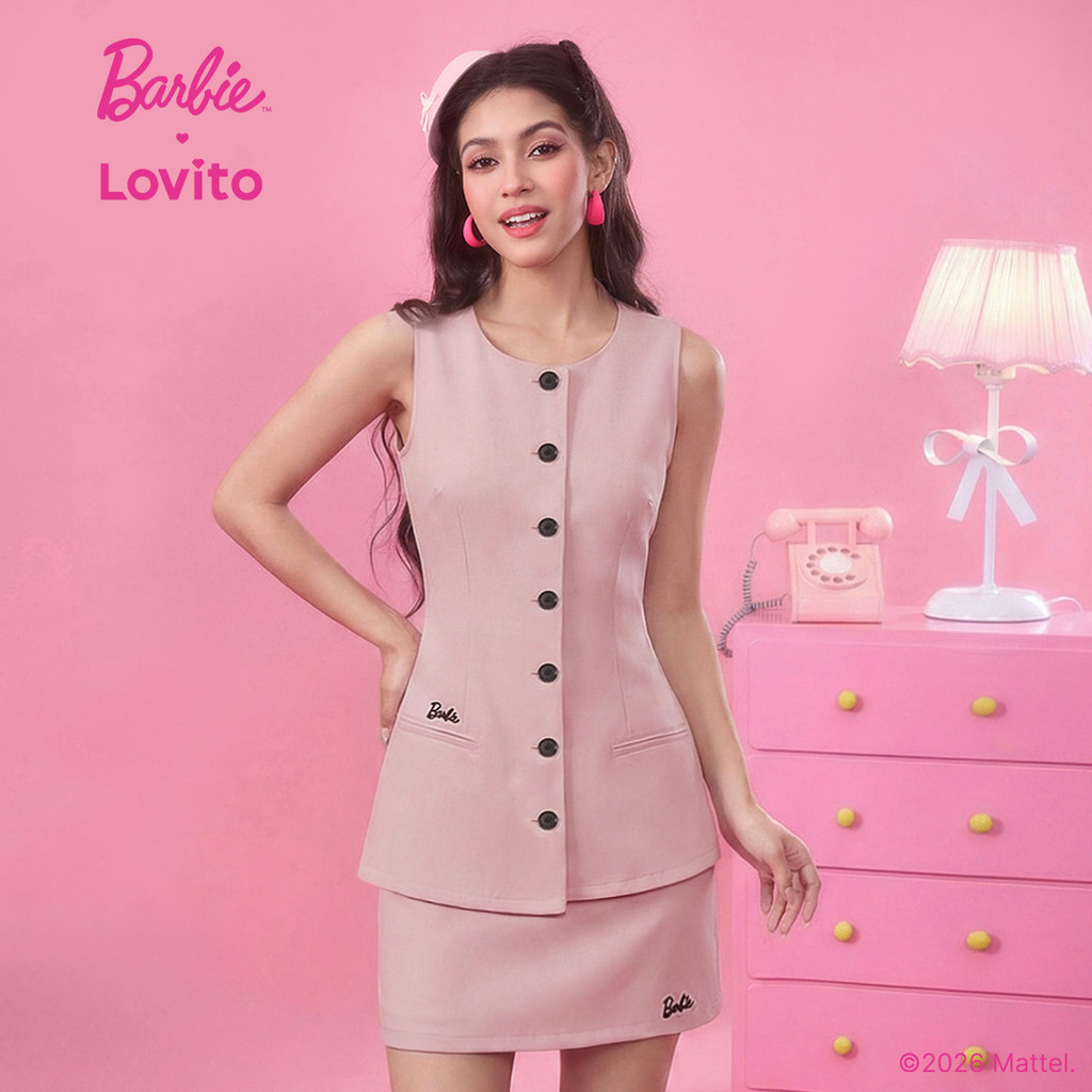 Barbie™ X Lovito Tops ou Bottoms Botão Bordado Primavera/verão Blusa Rosa Tops ou Bottoms para Mulheres LB1AD037
