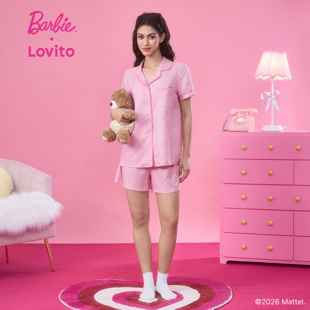 Barbie™ X Lovito Tops ou Bottoms Casuais Primavera/verão Blusa Rosa Tops ou Bottoms para Mulheres LB1AD028