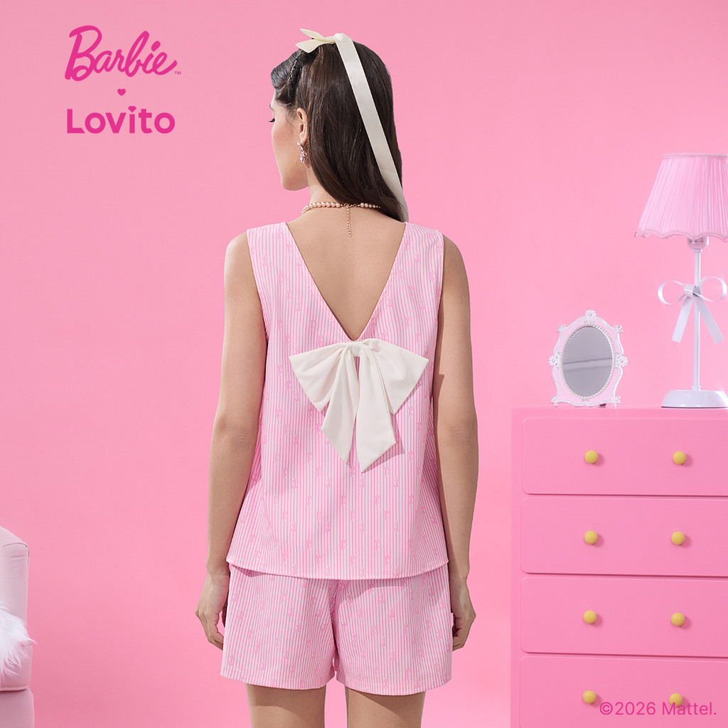 Barbie™ X Lovito Tops ou Bottoms Casuais Primavera/verão Top Rosa Tops ou Bottoms para Mulheres LB1AD047