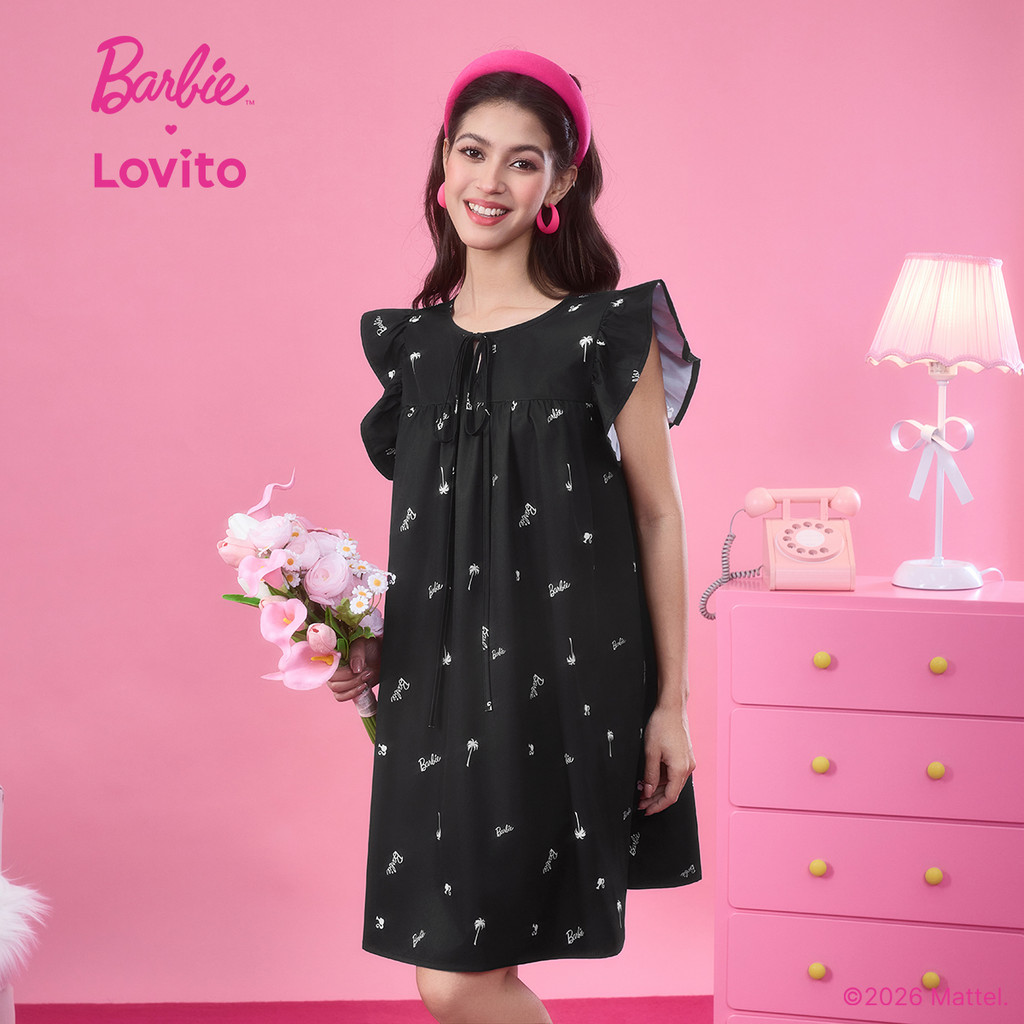 Barbie™ X Lovito Vestido Casual Primavera/verão Preto para Mulheres LB1AD040