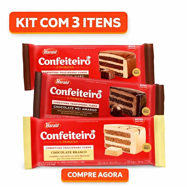 | Barra Chocolate Confeiteiro Tipos 1kg C/03 Unidades Harald Cobertura este produto | R$ 129,99 | — | 5.0/5 | 93 |