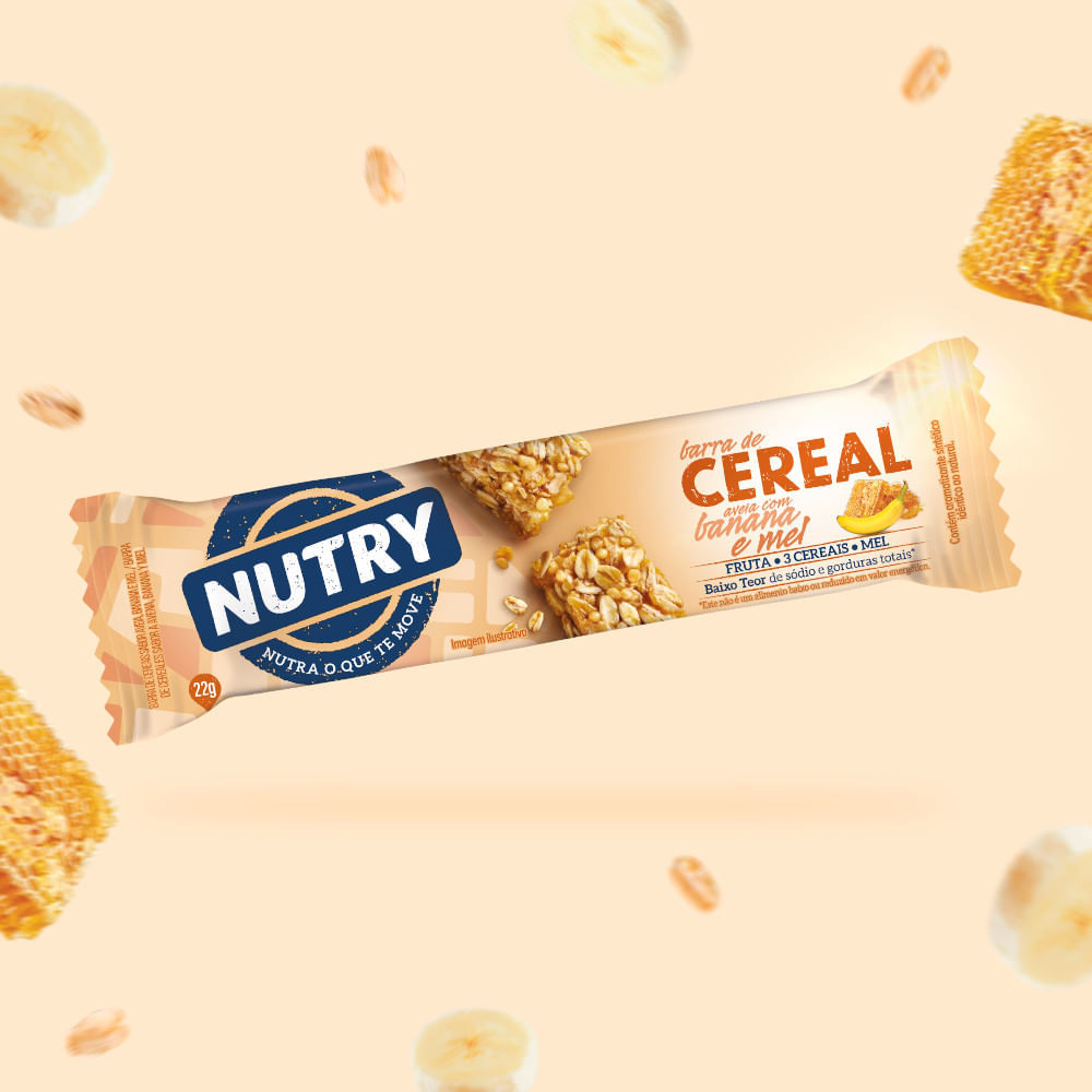 BARRA DE CEREAIS NUTRY AVEIA, BANANA E MEL Barra de cereais sabor aveia, banana e mel. Alérgicos: Contém aveia e derivados de cevada e soja. Pode conter amêndoa, amendoim, avelã, castanha-de-caju, cas