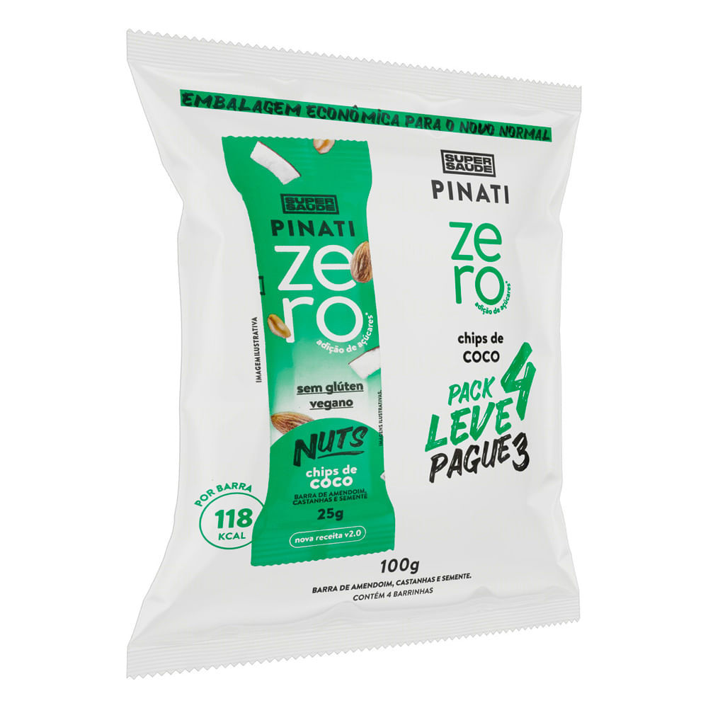 Barra de Cereais Pinati Nuts Zero Chips de Coco Leve 4 Pague 3 com 4 unidades de 25g cada