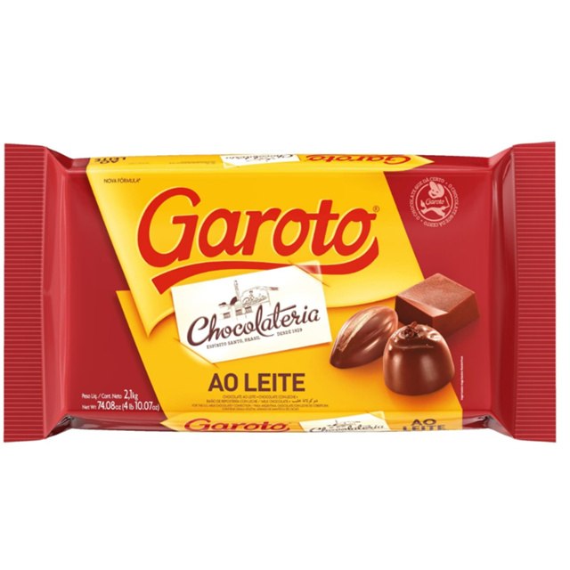 | Barra de Chocolate Ao Leite Cobertura Garoto 2,1kg este produto | R$ 236,99 | — | 4.8/5 | 1 |