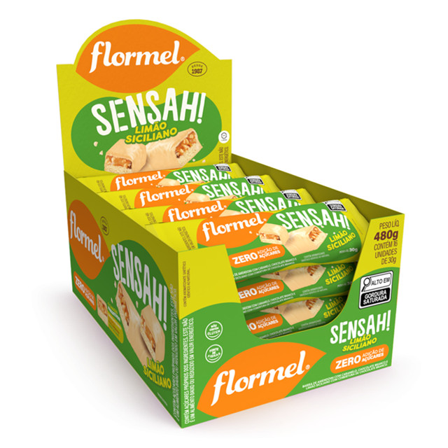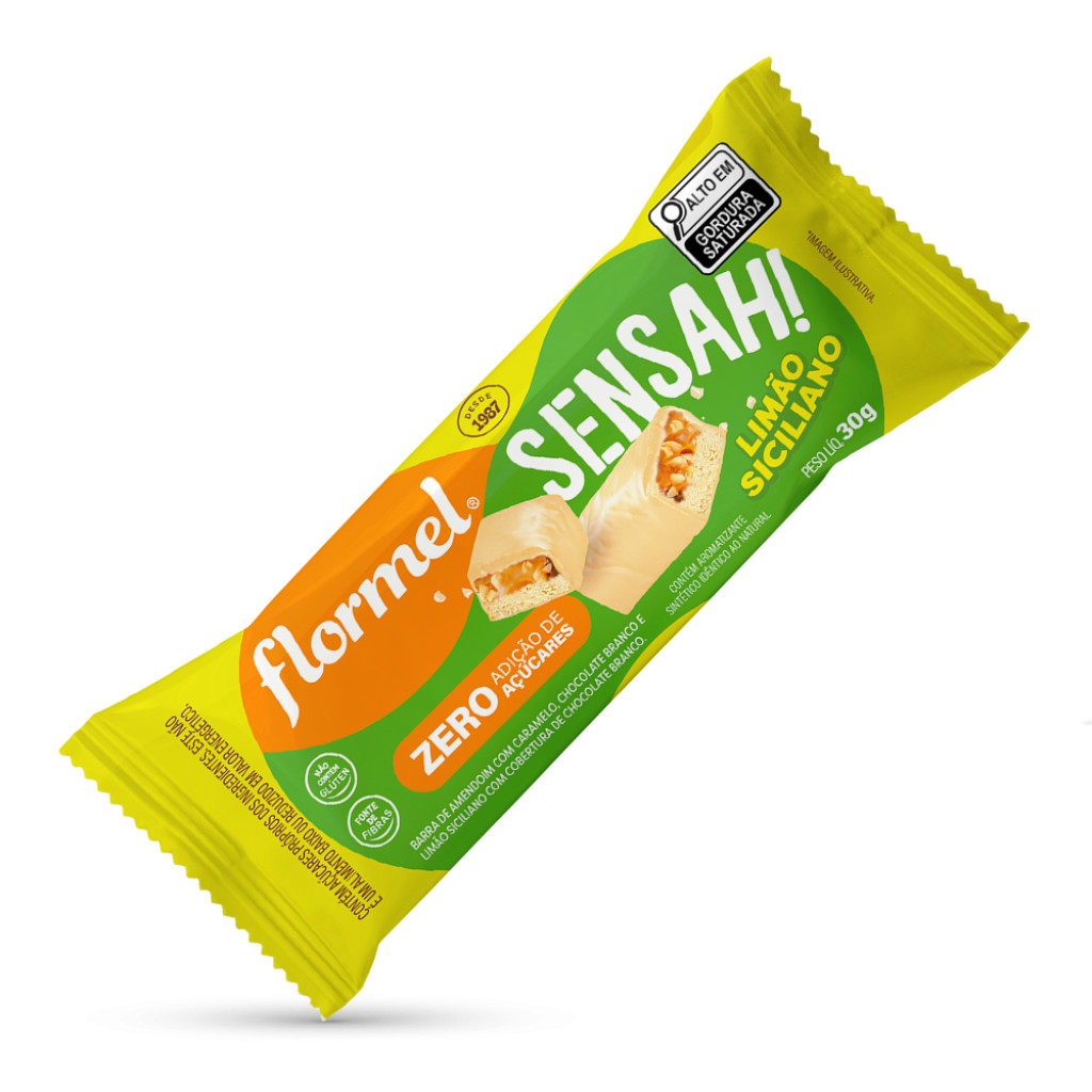 Barra de Chocolate Branco Zero com Limão Siciliano Sensah - 16 unidades de 30g O azedinho doce que é tão, mas tão bom, que dá vontade de aplaudir. Conheça Flormel SENSAH – Limão Siciliano. Caramelo crocante, pasta de amendoim e creme de limão siciliano se combinam no recheio, uma camada de chocolate branco chega envolvendo tudo na cobertura pra finalizar esse verdadeiro show de sabor. Além de delicioso, ele é sem adição de açúcares, zero glúten e fonte de fibras. Pra matar a vontade de doce sem descuidar da sua saúde. Coisa boa demais! Cada caixinha vem com 16 unidades de 30 g cada. Pra ter em casa, compartilhar com os amigos e criar boas memórias. Isso é SENSAH!